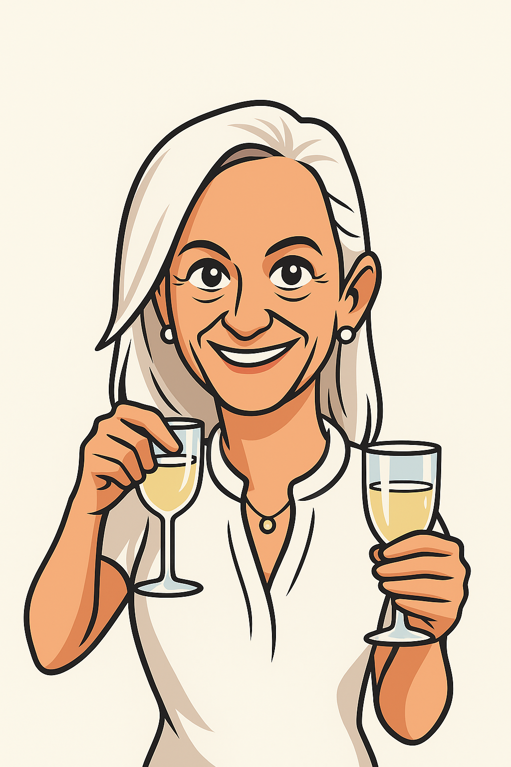 Illustration de Rose, cofondatrice et secrétaire de l’association Accords levant son verre pour célébrer l’engagement collectif du bénévolat en soins palliatifs à Aix-en-Provence.